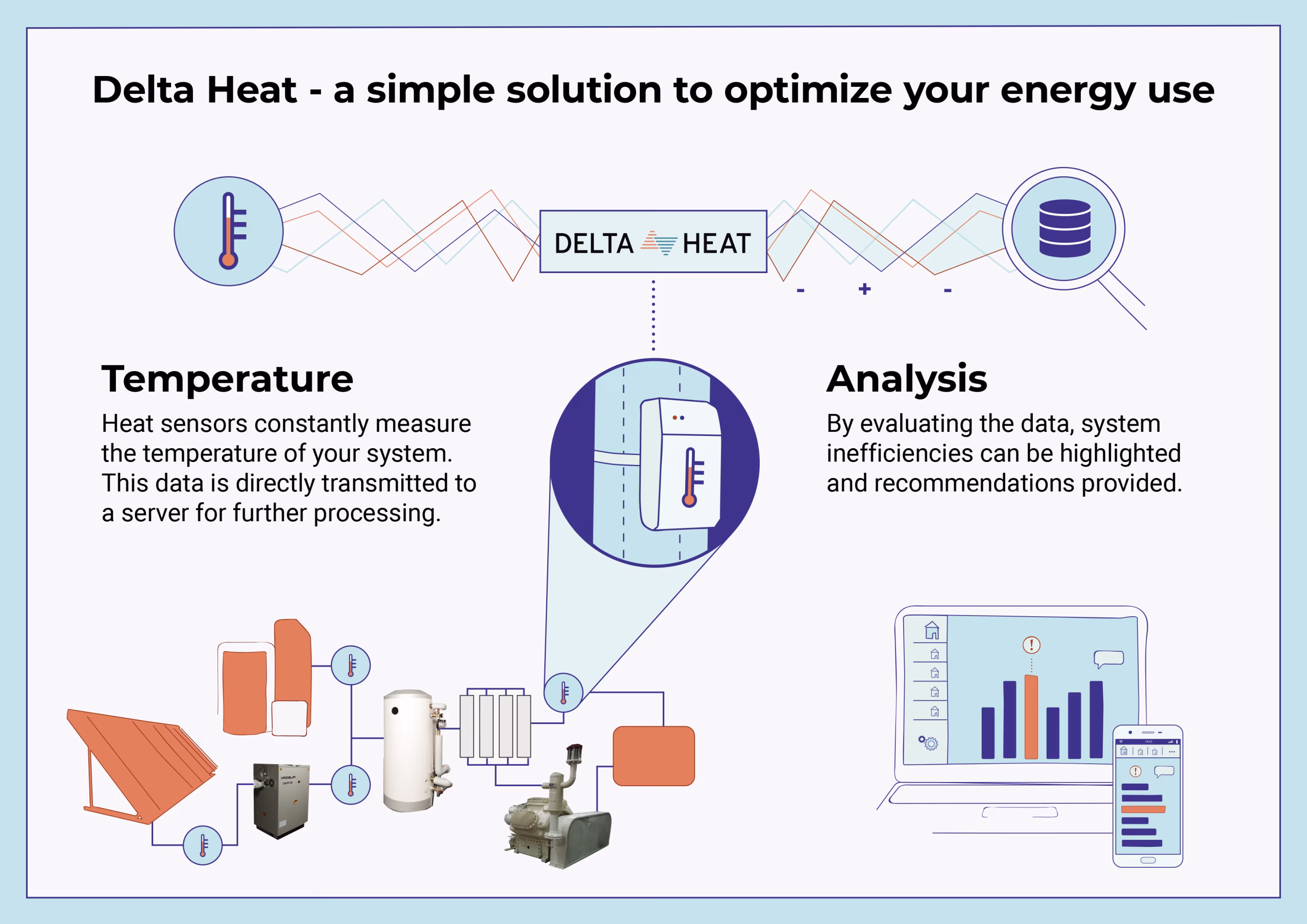 Delta Heat is a Berlin-based company that specializes in heating system efficiency. Here, I outline Delta Heat’s process of tracking and analyzing thermal data within a heating system to optimize energy efficiency. I also designed the company’s logo and created animated vector graphics to visually enhance the process.